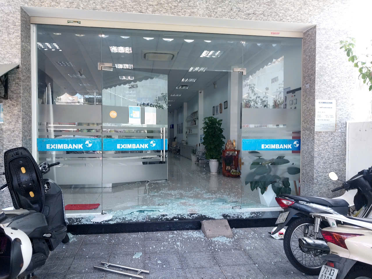 Khoảng 11h30 ngày 21-5, Phòng giao dịch Ngân hàng Eximbank tại địa chỉ 987 đường 30-4, phường 11, TP Vũng Tàu đã đóng cửa nghỉ trưa. Nhưng bất ngờ có một người mặc áo trùm kín đầu, liều lĩnh đập vỡ cửa kính, xông vào trong.